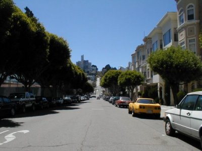Die berühmte kurvige Lombard Street (am Ende der Straße)